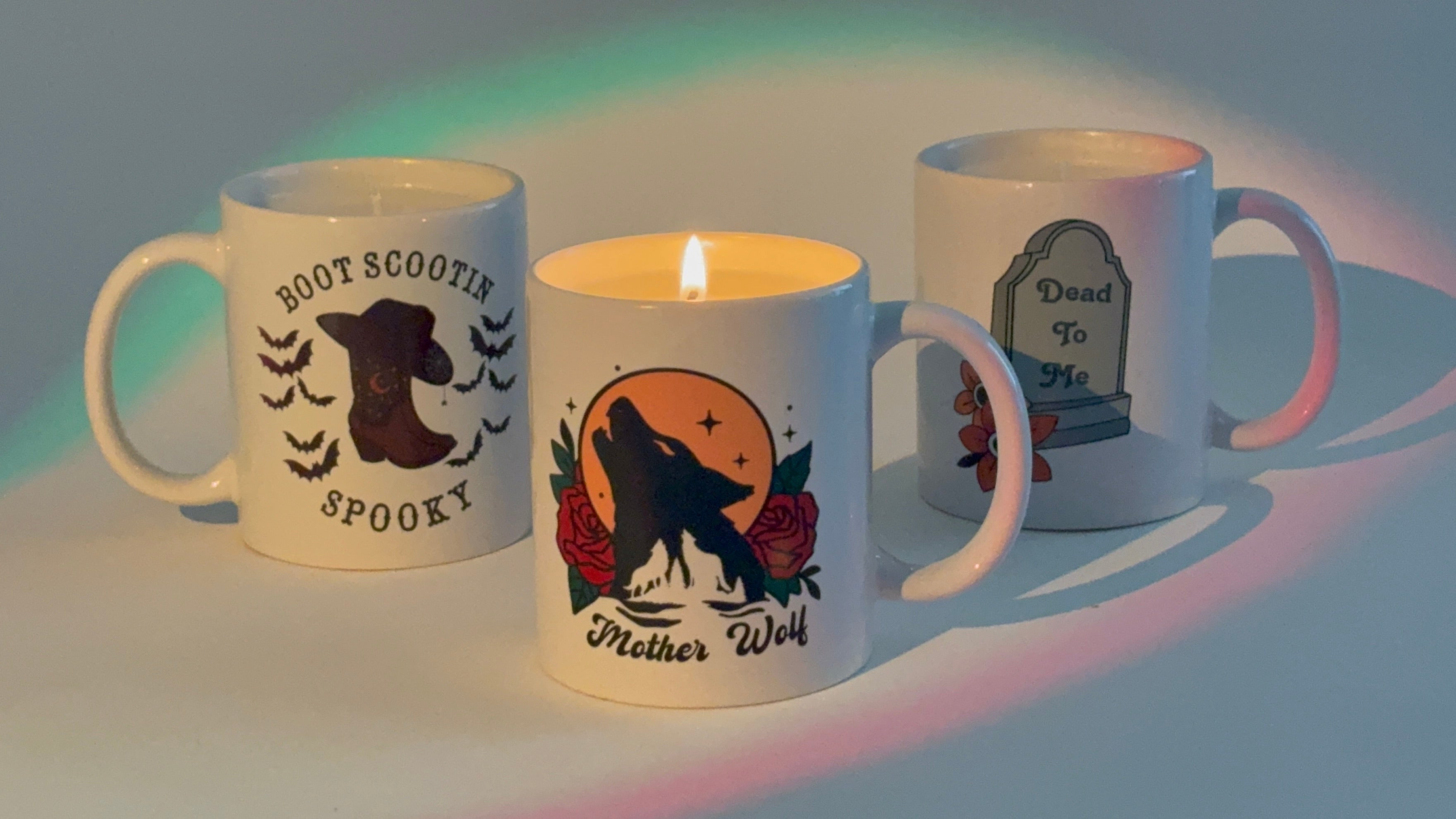 Our 10oz mugs now with a second purpose- Make your collectable cup a candle as well!